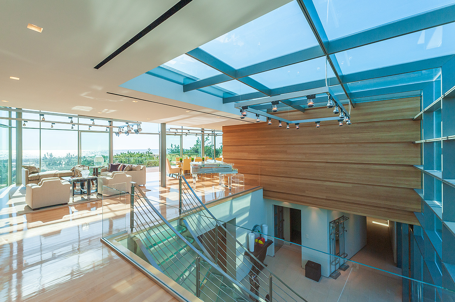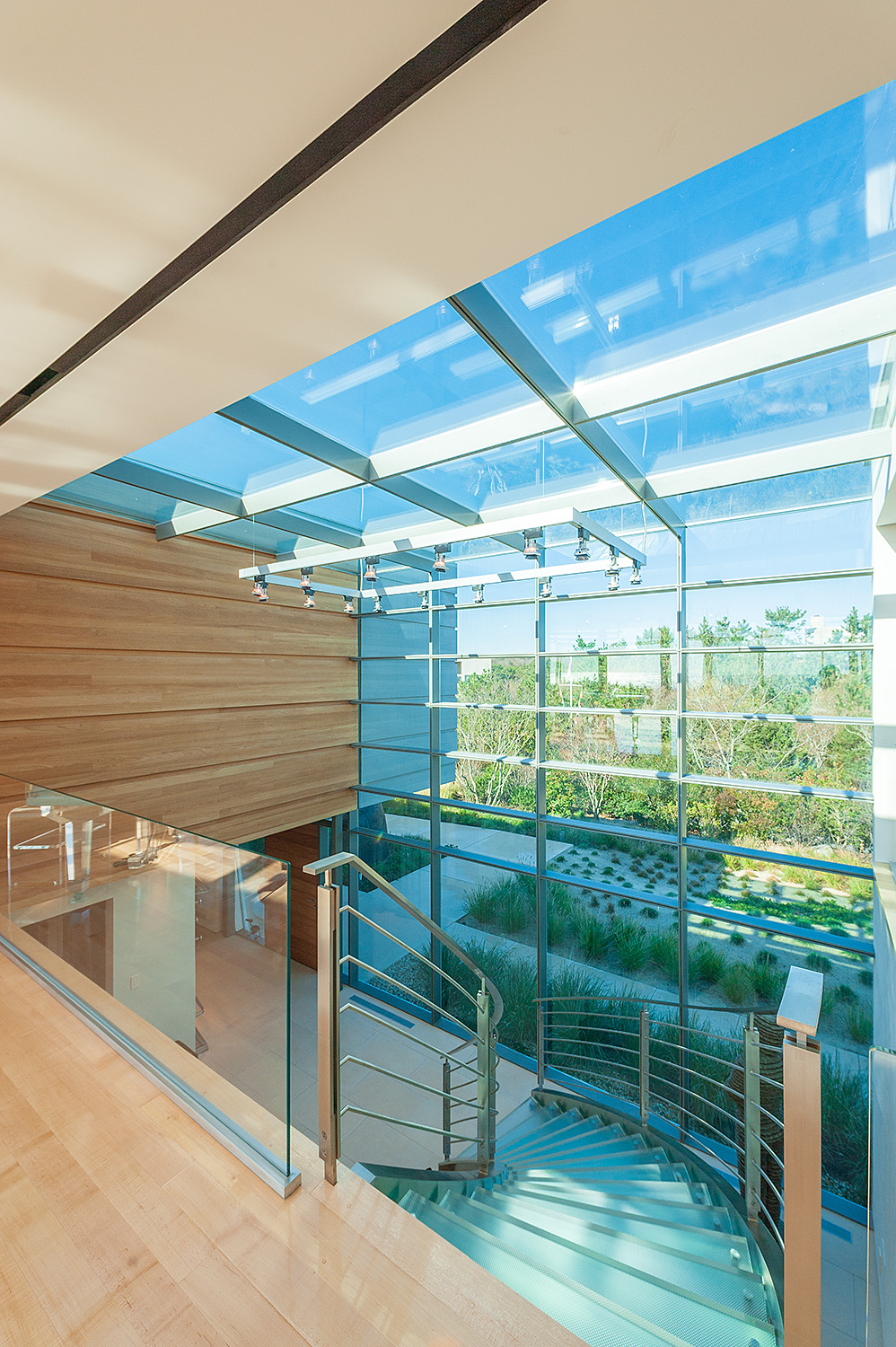 • Features: Curved staircase with 3-inch glass threads and stainless steel railings