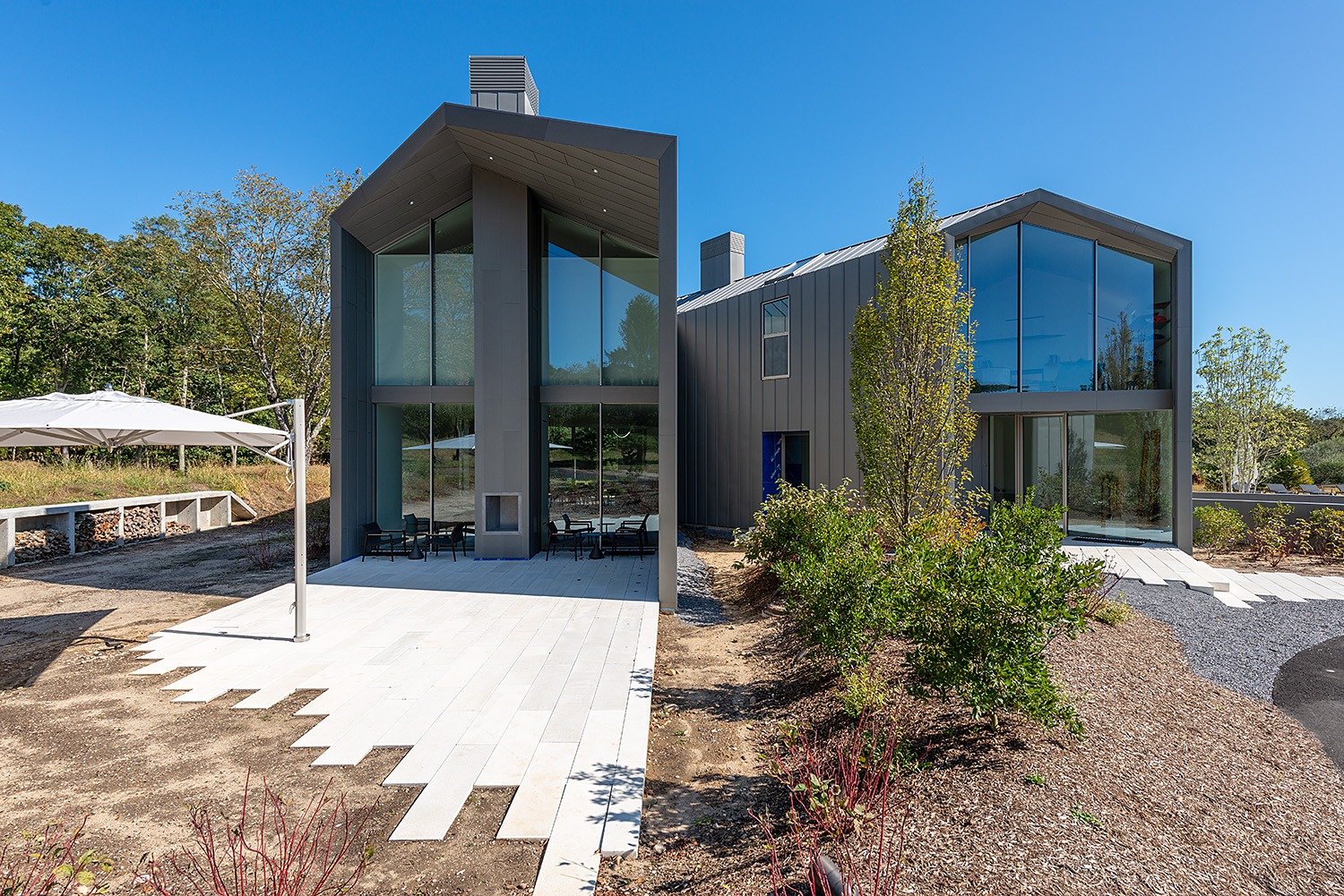 • Features: Standing seam zinc panels wrapping, Floor to ceiling windows and doors, AGS frameless interior doors